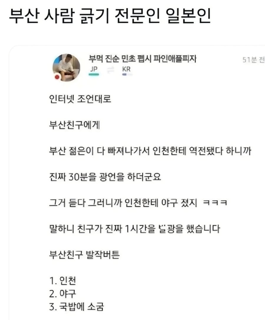 일본인이 말하는 부산 사람 발작 버튼 > 유머게시판