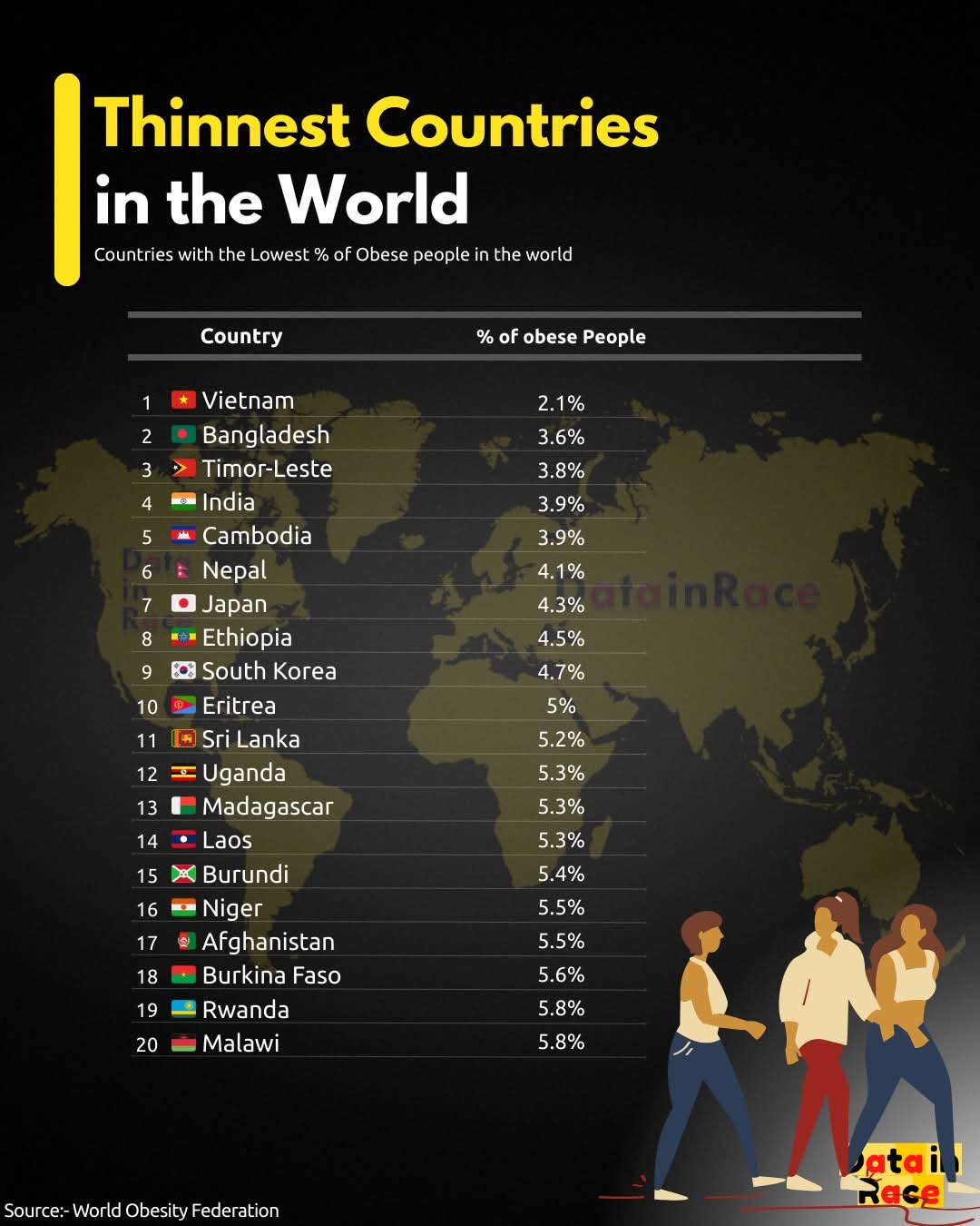 세계에서 비만율이 가장 낮은 나라는 어디일까
