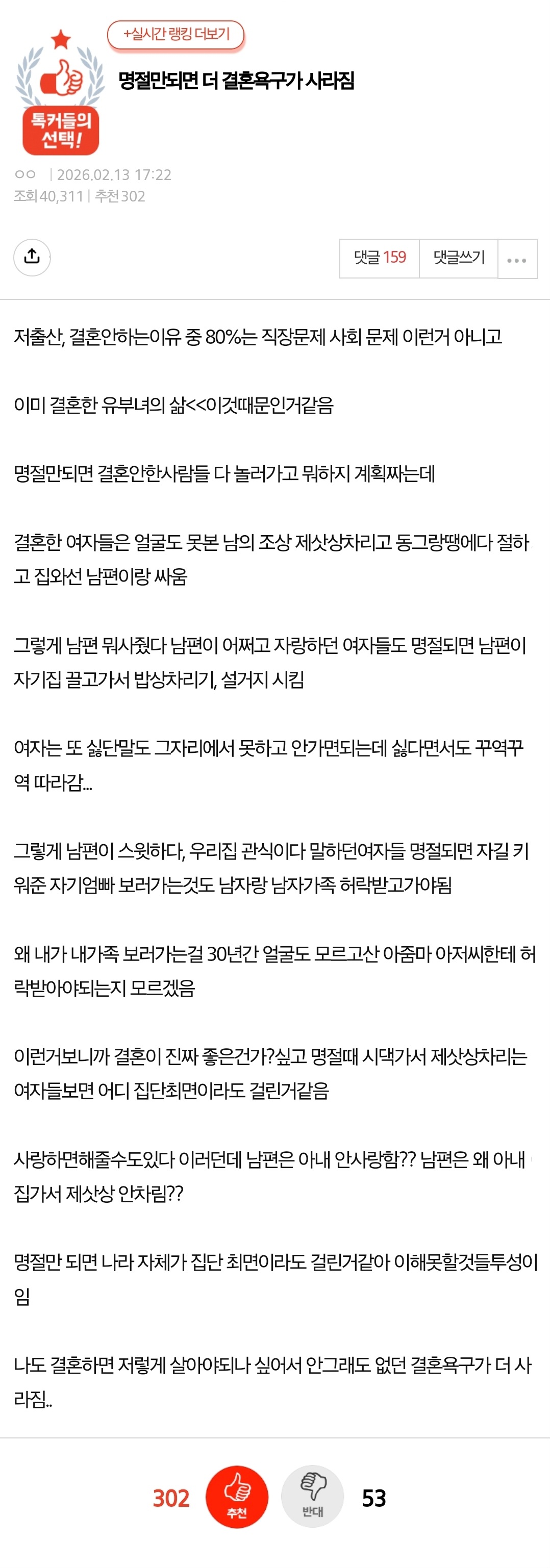 명절만 되면 더 결혼 욕구가 사라짐 > 유머게시판