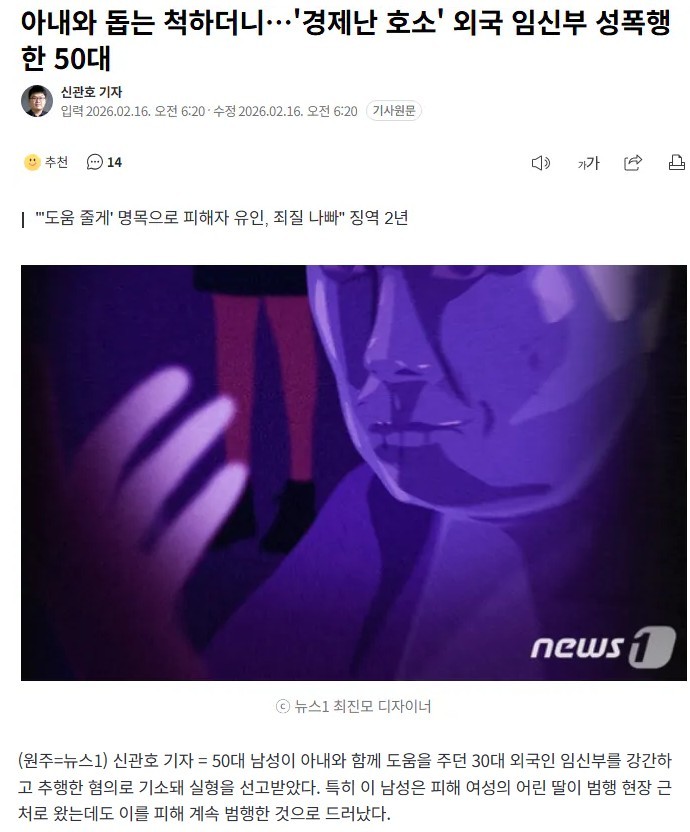 '경제난 호소' 외국 임신부 성폭행한 50대