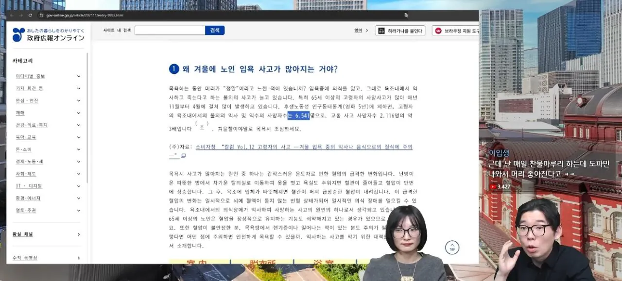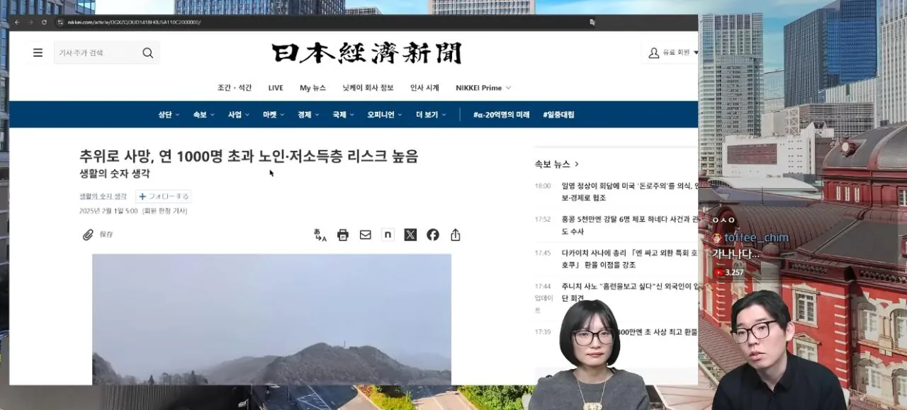 일본이 겨울이 추워지고 고령화 사회가 되면서