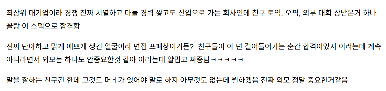 외모 덕에 대기업 간 친구가 짜증