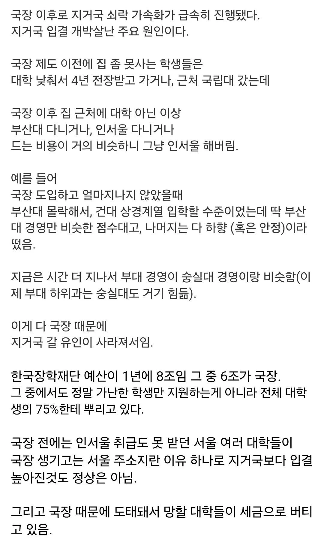 국장 때문에 지거국이 망했다는 서울대생