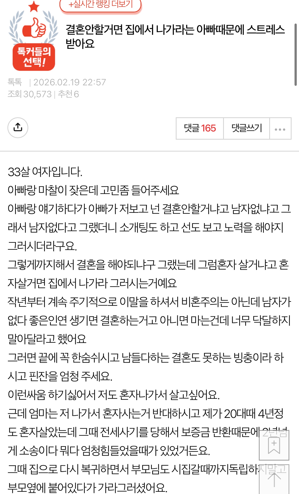 결혼 안할거면 집에서 나가라는 아빠