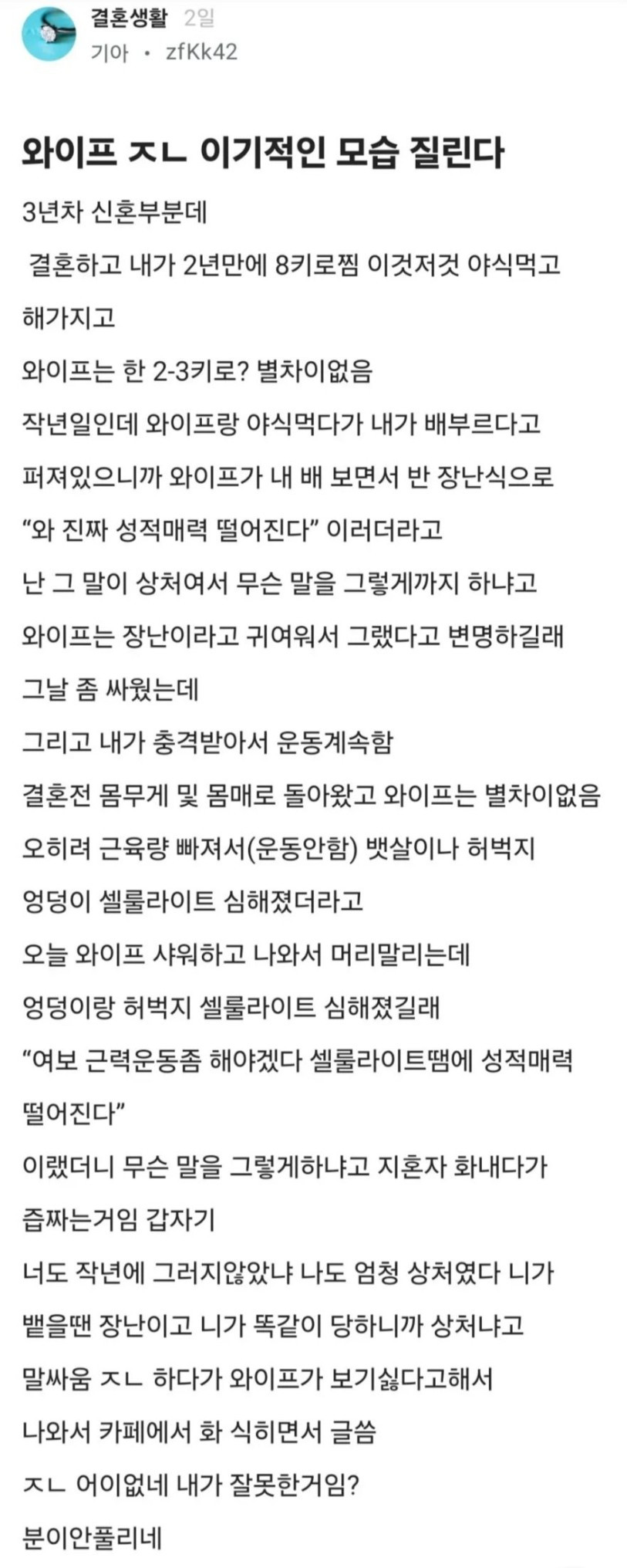 와이프 ㅈㄴ이기적인 모습 질린다 > 유머게시판