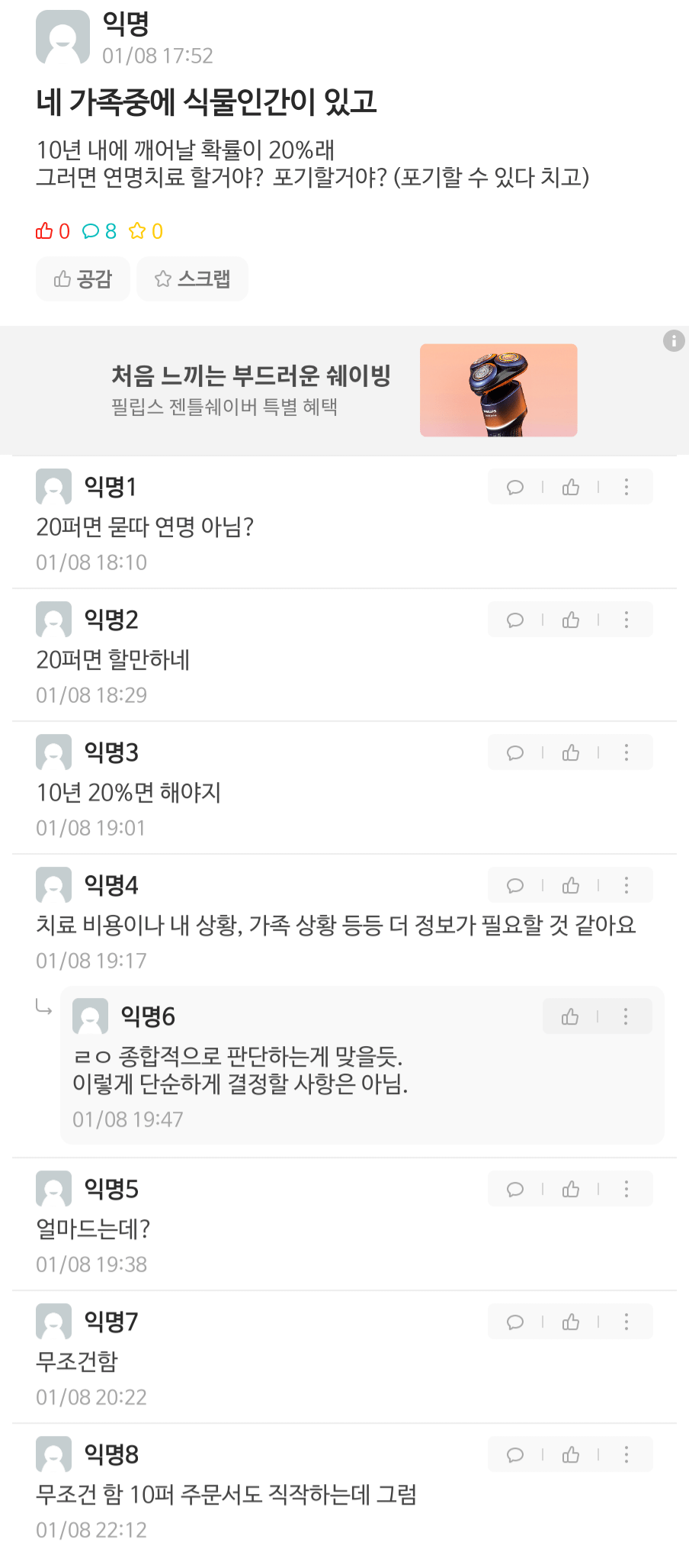 식물인간이 된 가족이 10년 내 깨어날 확률 20%