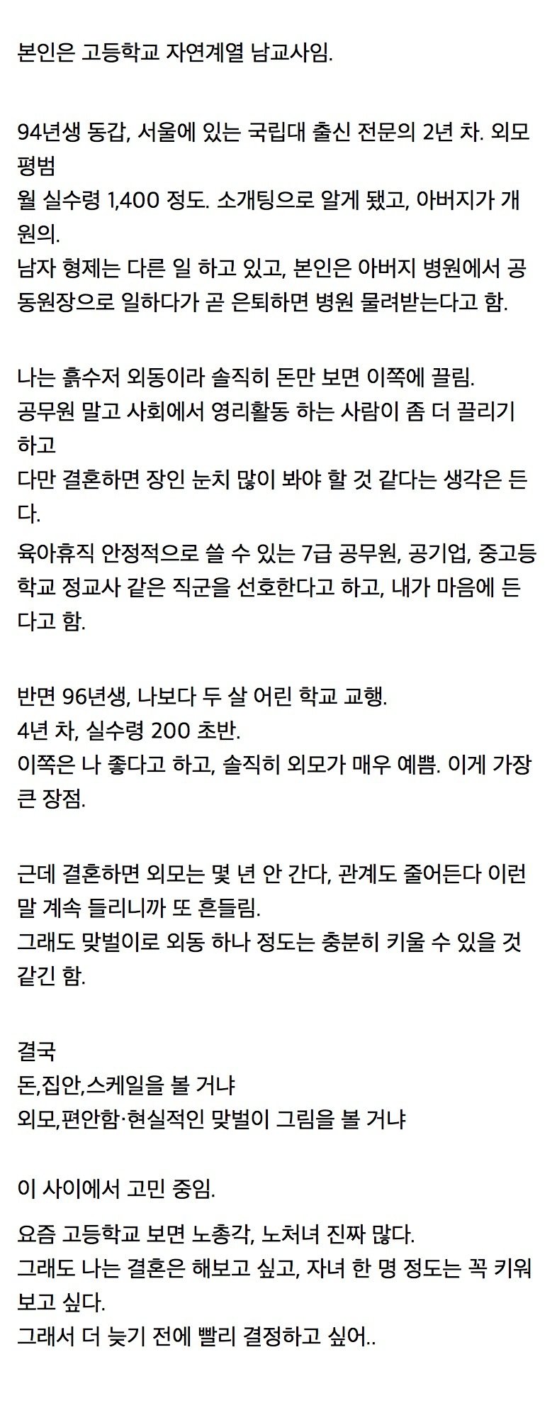 외모 평범 여의사 vs 이쁜 공무원녀 > 유머게시판