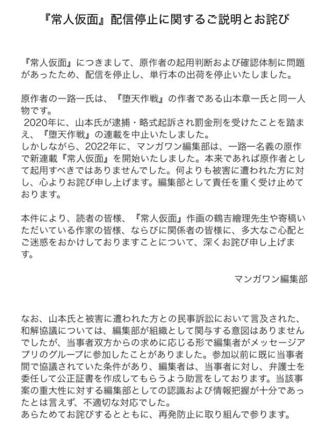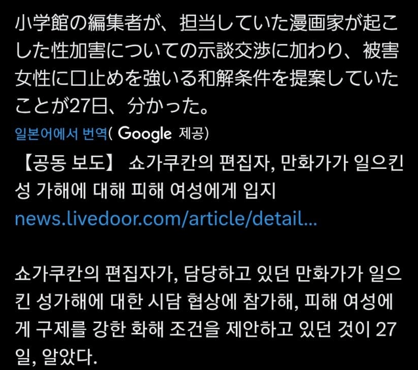 성범죄로 유죄를 받고 연재를 짤림 (유명 작가는 아님)