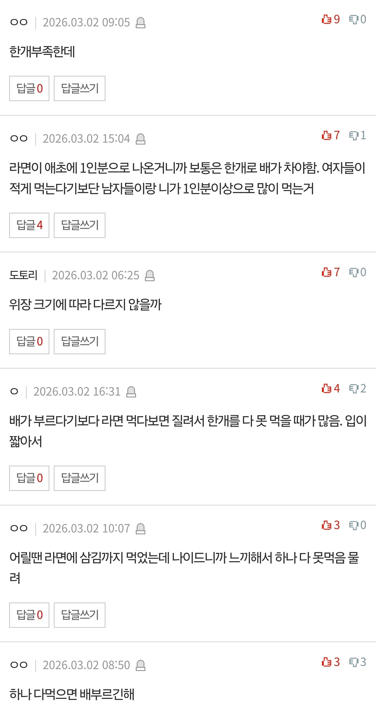 여자들 라면 1봉지 먹으면 배불러? > 유머게시판