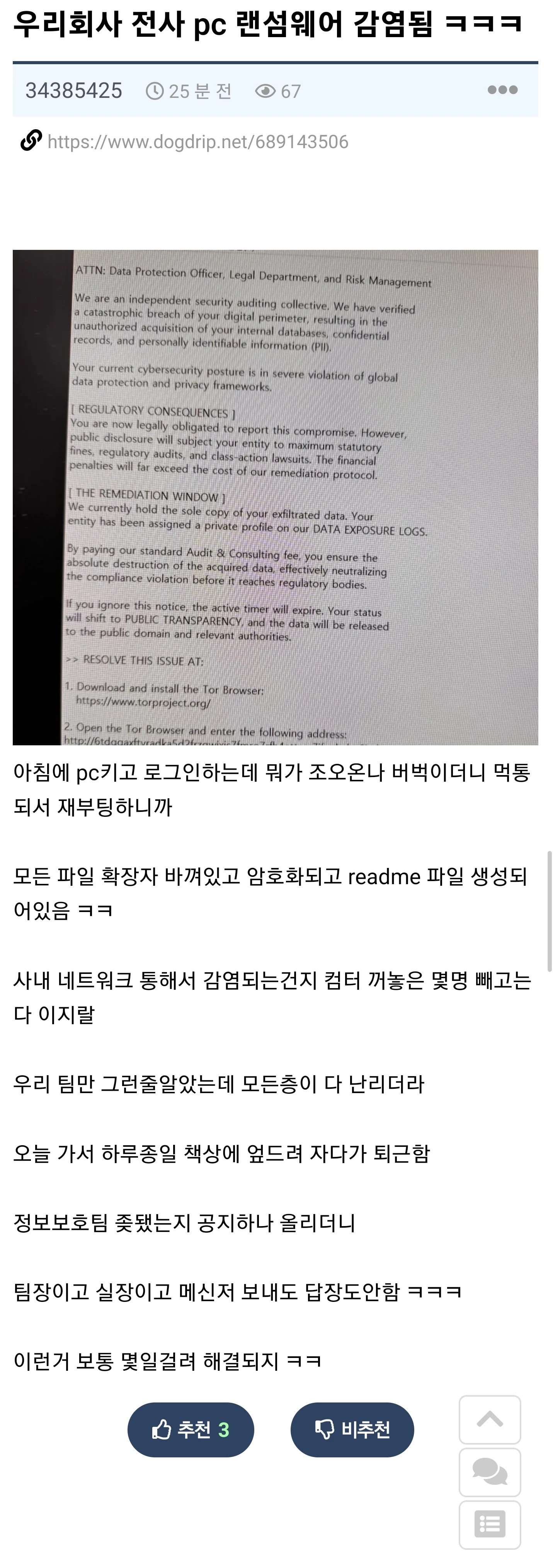 우리회사 전사 랜섬웨이 PC 감염됨 > 유머게시판