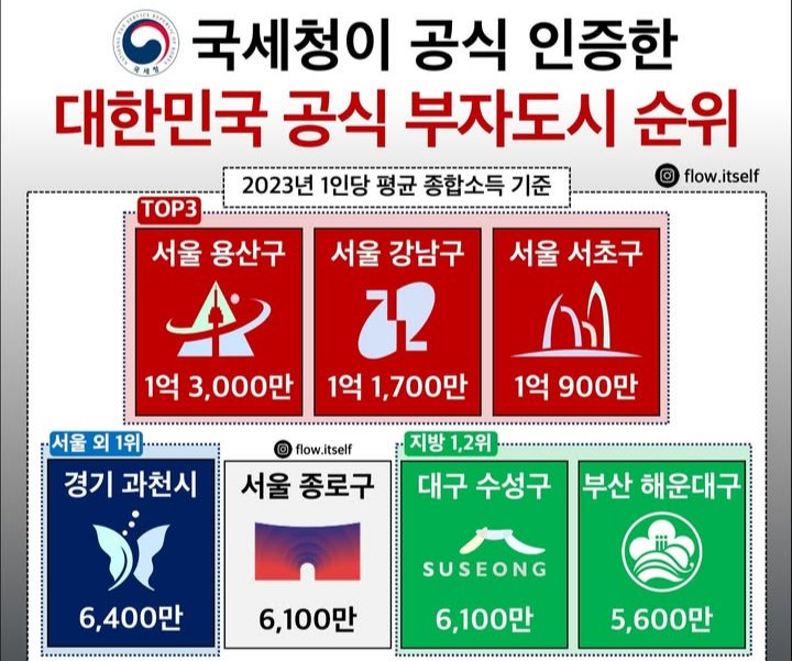 국세청이 공식 인증한 대한민국 부자 도시 순위 > 유머게시판